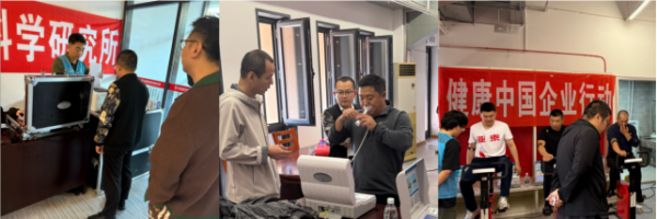 科学检测,构建员工健康数字画像。活动引入国家体育科学研究所权威检测体系,通过智能化设备完成,涵盖身体成分分析、肺功能评估、肌肉力量测试、柔韧性测量等10余项指标检测,并现场生成《个人体质评定报告》,包含运动风险预警、个性化锻炼建议及运动指导等。
